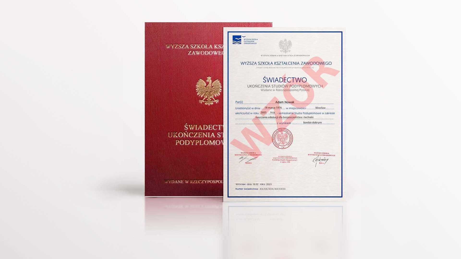 1. Świadectwo potwierdzające ukończenie studiów podyplomowych Nauczanie edukacji dla bezpieczeństwa (EDB) 2. Świadectwo potwierdzające ukończenie studiów podyplomowych Nauczanie techniki Oba dokumenty stanowią formalne potwierdzenie uzyskania kompetencji do